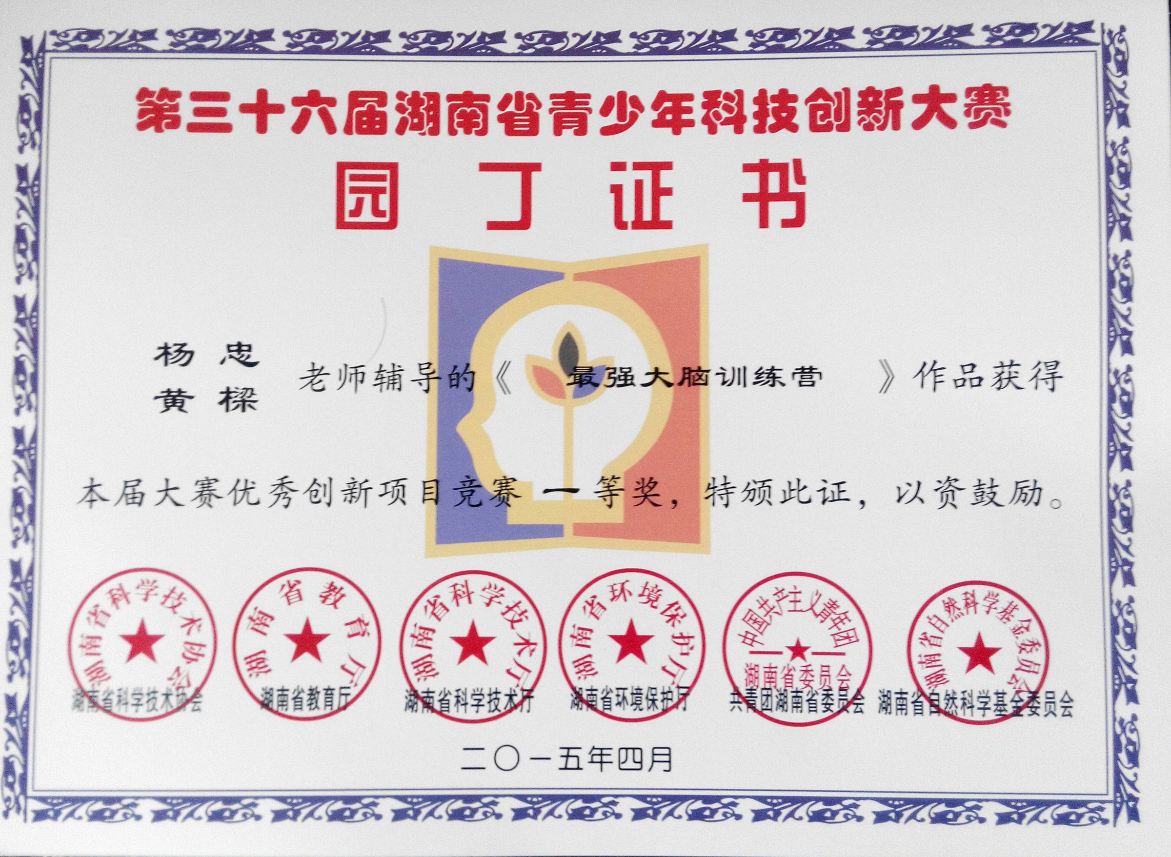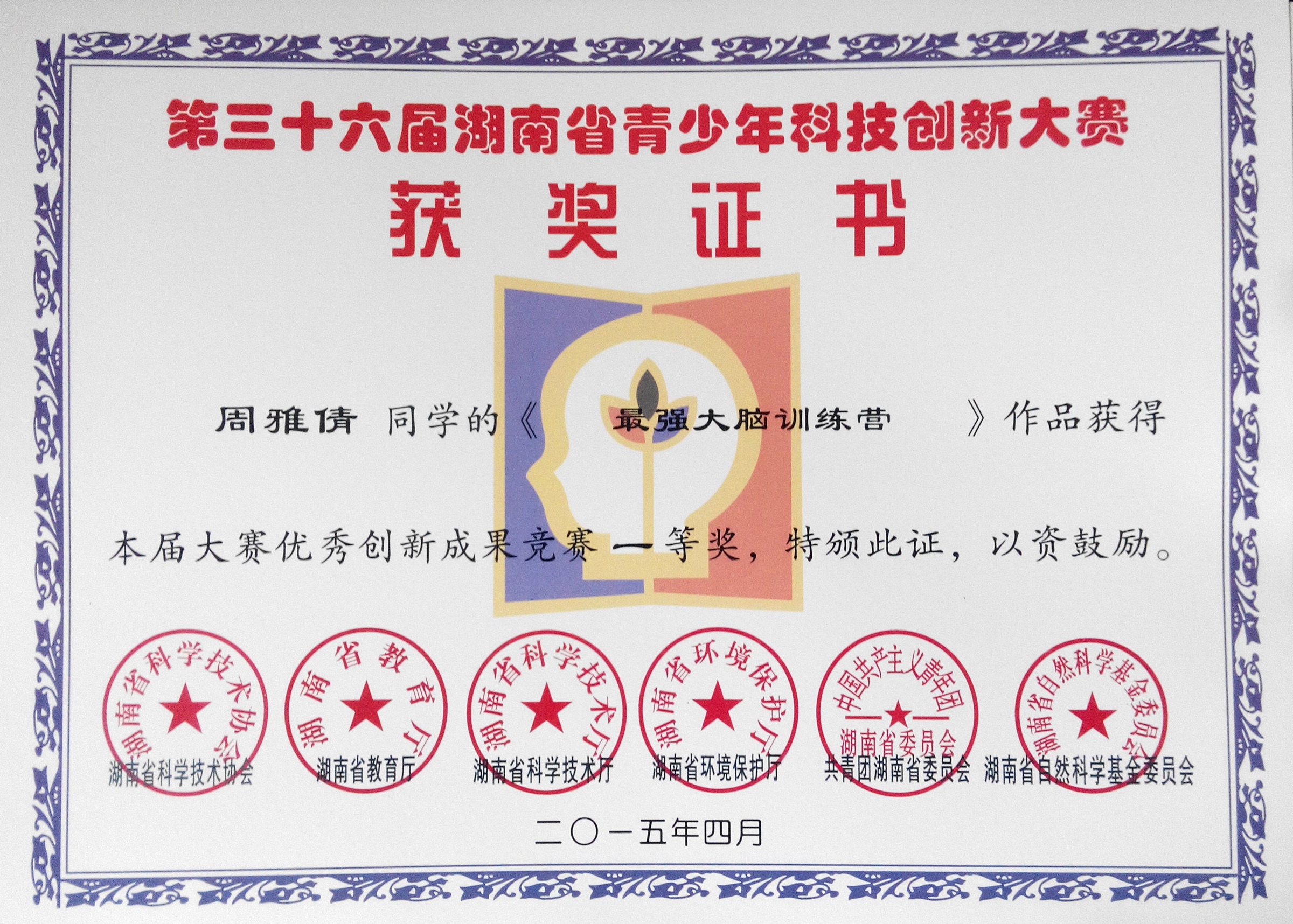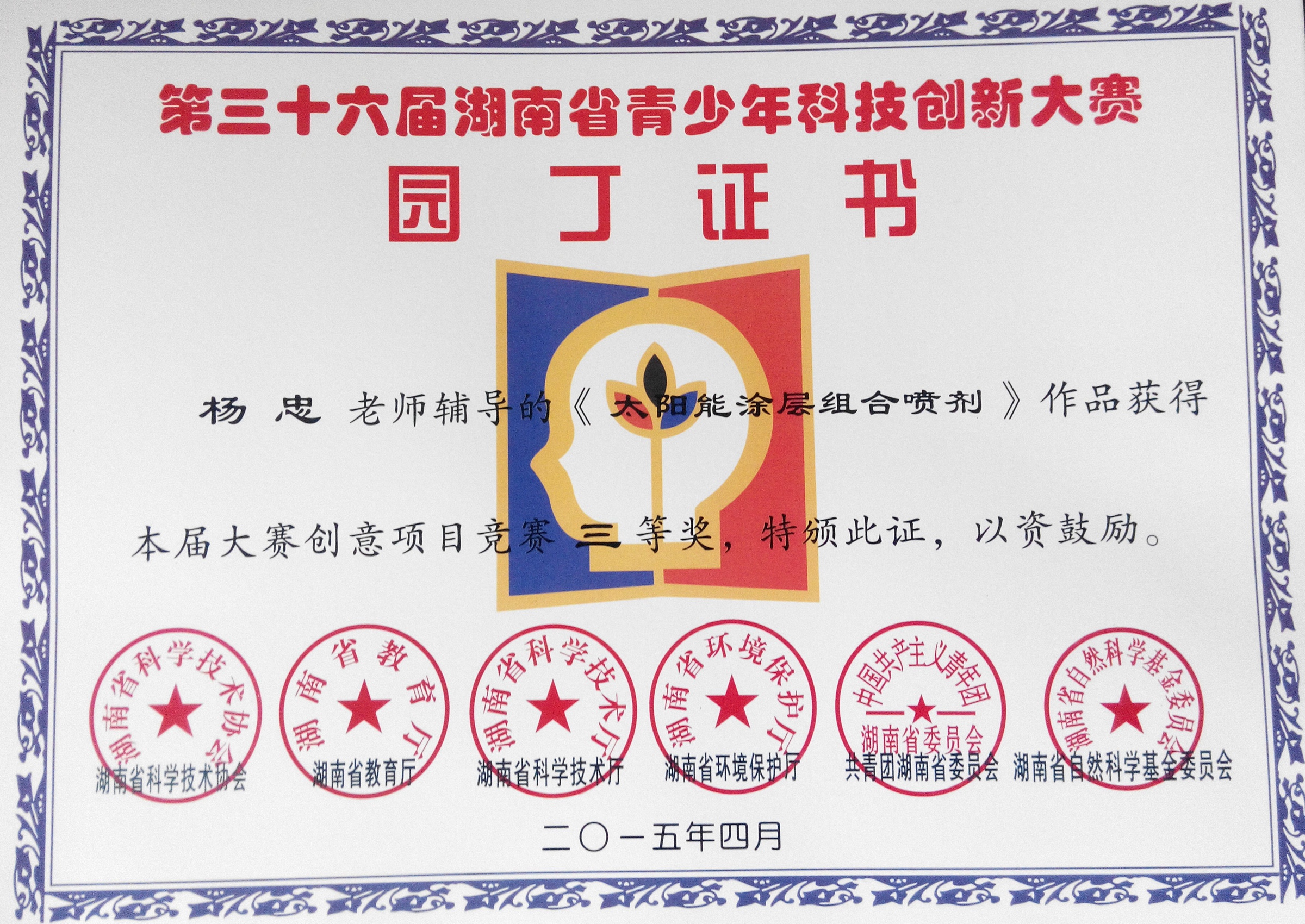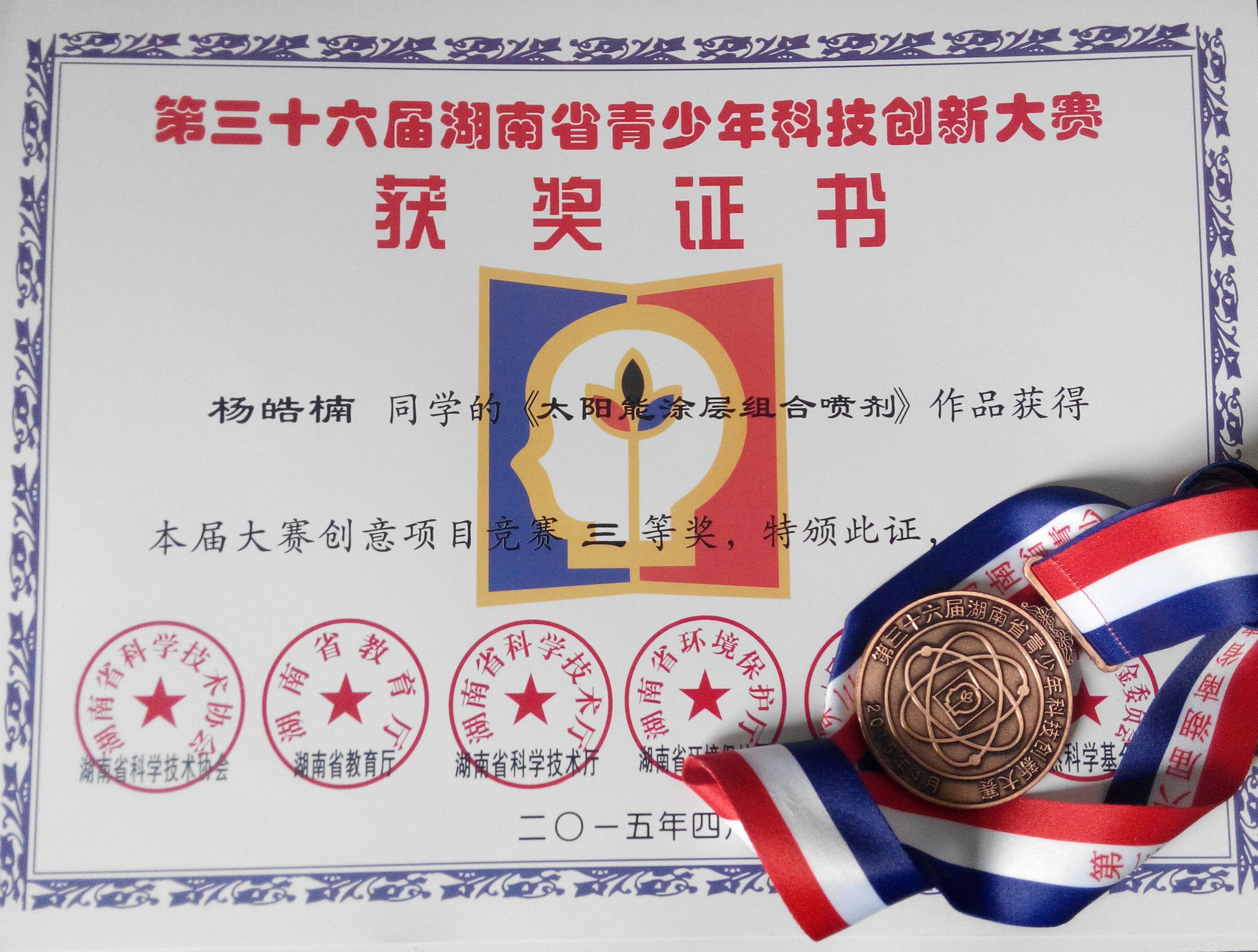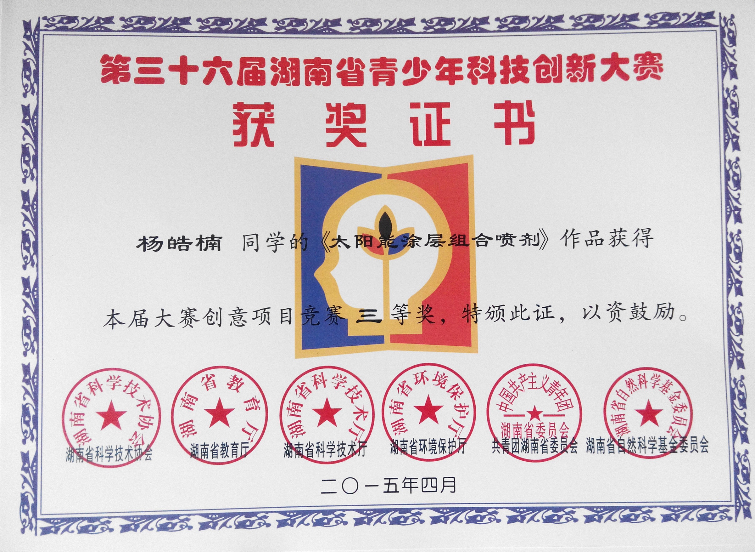 | 【图集名称】: 2015年上期/2015-04-20湖南省第36届青少年科技创新大赛获奖证书 本学期图集列表 |