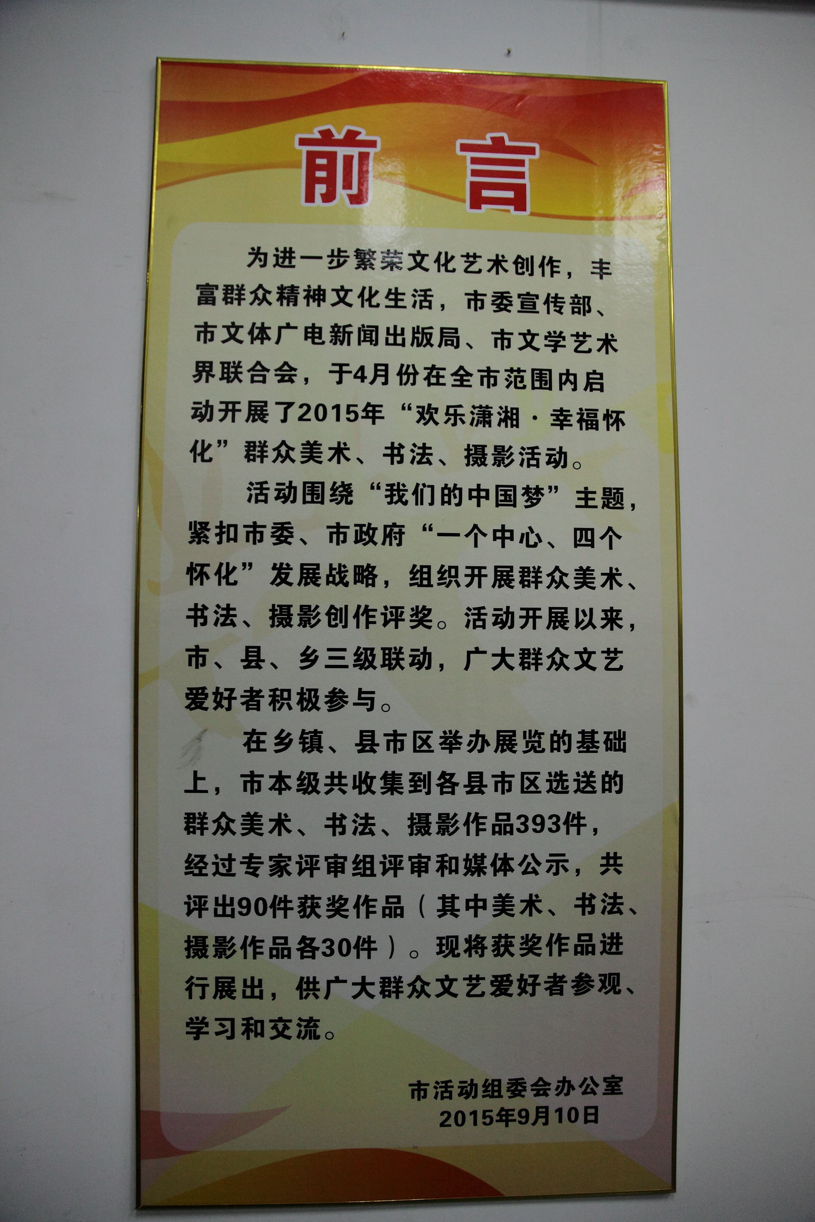 | 【图集名称】: 2015年下期/2015-09-10“欢乐潇湘,幸福怀化”群众书画摄影展活动 本学期图集列表 |