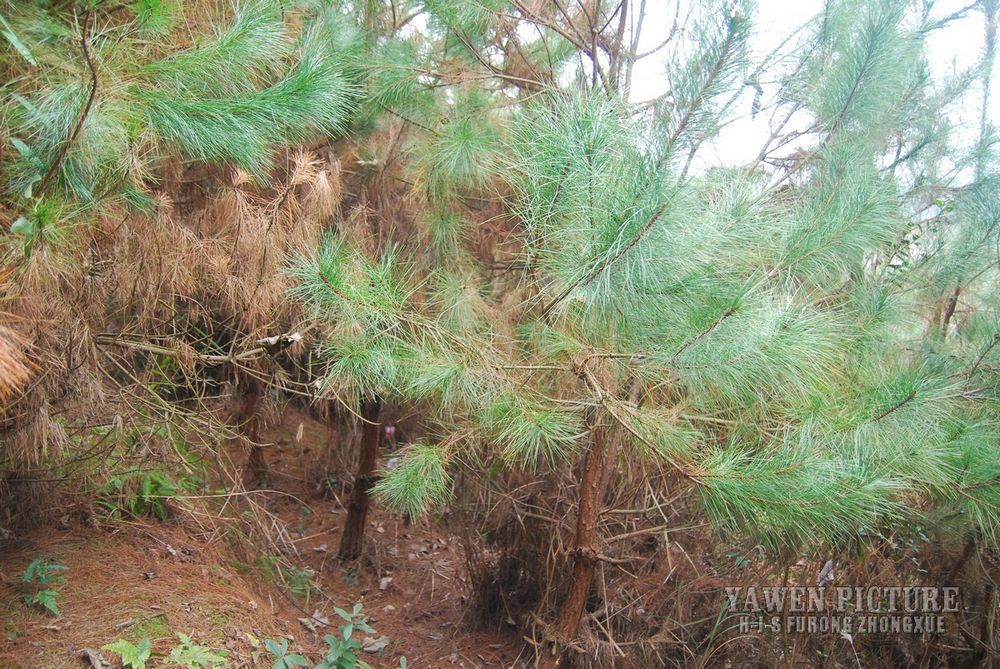针叶2针一束,稀3针一束,长12-20厘米,细柔,微扭曲,两面有气孔线,边缘有细锯齿;横切面皮下层细胞单型,第一层连续排列,第二层由个别细胞断续排列而成,树脂道约4-8个,在背面边生,或腹面也有2个边生;叶鞘初呈褐色,后渐变成灰黑色,宿存。
