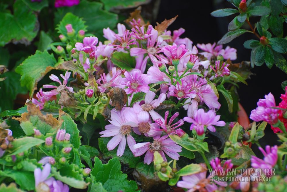 小花紫红色,淡蓝色,粉红色或近白色;舌片开展,长椭圆形,长2.5-3.5厘米,宽1-1.5厘米,顶端具3小齿;管状花黄色,长约6毫米。瘦果长圆形,长约1.5毫米,具棱,初时被毛,后变无毛。冠毛白色,长4-5毫米。花果期3-7月。有紫色、紫白色、紫色,紫白色比较常见。原产大西洋加那利群岛。中国各地公园或庭院广泛栽培。花色美丽鲜艳,色彩多样,是一种常见的盆景花卉和装点庭院居室的观赏植物。园艺品种极多。大致可分为大花型、星形、中间型和多花型四类,不同类型中又有不同重瓣和高度不一的品种。