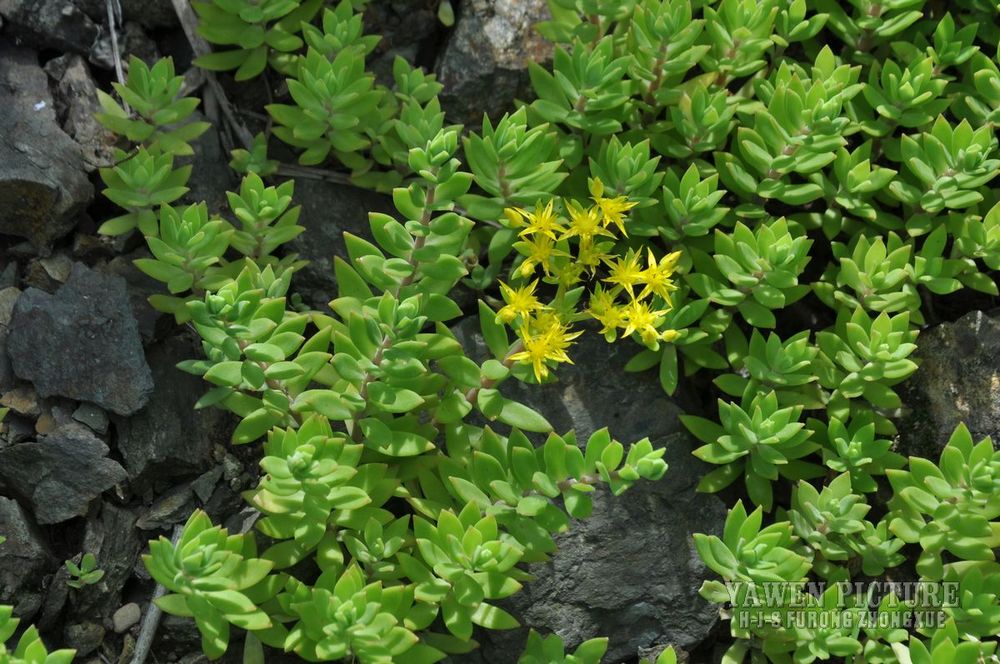 基部无距;花瓣5,黄色,披针形至长圆形,长5-8毫米,先端有稍长的短尖;雄蕊10,较花瓣短;鳞片10,楔状四方形,长0.5毫米,先端稍有微缺;心皮5,长圆形,长5-6毫米,略叉开,有长花柱。种子卵形,长0.5毫米。花期5-7月,果期8月。产中国福建、贵州、四川、湖北、湖南、江西、安徽、浙江、江苏、甘肃、陕西、河南、山东、山西、河北、辽宁、吉林、北京(模式产地)。生于海拔1600米以下山坡阳处或石上。