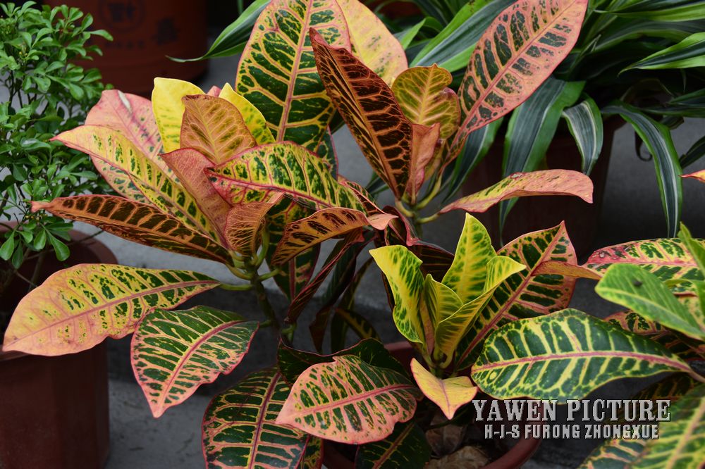变叶木是自然界中颜色和形状变化最多的观叶树种,极为美丽。中型盆栽,陈设于厅堂、会议厅、宾馆酒楼,平添一份豪华气派;小型盆栽也可置于卧室、书房的案头、茶几上,具有异域风情。 变叶木奇特的叶形变化和七彩斑斓的叶色让人们赞叹不已。盆栽用它摆放宾馆、商厦、银行的大堂,可显示典雅豪华的气派。数盆点缀居室和小庭园,呈现出一片欣欣向荣的景象。由于不甚耐阴,在室内观赏时间不宜超过2~3周。在南方还适合于庭院布置,其叶还是极好的花环,花篮和插花的装饰材料。盆栽变叶木在贮运过程中对乙烯不敏感,在16~18℃温度和80%~90%相对湿度下,能忍耐黑暗30天。