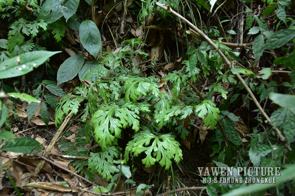 土生,近直立,基部横卧,高25-45厘米,无匍匐根状茎或游走茎。根托达植株中部,通常由茎上分枝的腋处下面生出,偶有同时生2个根托,1个由上面生出,长4-22厘米,直径0.8-1.2毫米,根少分叉,被毛。主茎自下部开始羽状分枝,不呈“之”字形,无关节,禾秆色,主茎下部直径1-3毫米,茎卵圆形或近方形,不具沟槽,光滑,维管束1条;侧枝3-6对,2-3回羽状分枝,分枝稀疏,主茎上相邻分枝相距3-6厘米,分枝无毛,背腹压扁,主茎在分枝部分中部连叶宽0.7-1毫米,末回分枝连叶宽4-7毫米。叶全部交互排列,二形,纸质,表面光滑,无虹彩,边缘不为全缘,不具白边。主茎上的腋叶较分枝上的大,卵状三角形,基部钝,分枝上的腋叶对称,狭卵圆形到三角形,1.8-3.0毫米×0.9-1.4毫米,边缘有细齿。中叶不对称或多少对称,主茎上的略大于分枝上的,边缘有细齿,先端具芒或尖头,基部钝,分枝上的中叶长圆状卵形或卵状椭圆形或窄卵形,1.1-2.7毫米×0.4-1.4毫米,覆瓦状排列,背部明显龙骨状隆起,先端与轴平行,先端具尖头或芒,基部楔形或斜近心形,边缘具细齿。侧叶不对称,主茎上的较侧枝上的大,分枝上的侧叶长圆状镰形,略斜升,排列紧密或相互覆盖,2.3-4.4毫米×1.0-1.8毫米,先端平或近尖或具短尖头,具细齿,上侧基部扩大,加宽,覆盖小枝,上侧基部边缘不为全缘,边缘有细齿,基部下侧略膨大,下侧边近全缘,基部具细齿。孢子叶穗紧密,四棱柱形,单个或成对生于小枝末端,5-30毫米× l-2毫米;孢子叶一形,卵状三角形,边缘有细齿,白边不明显,先端渐尖,龙骨状;孢子囊穗常为2个兵声誉小枝顶端,长3-8毫米,四棱形;孢子叶4列,交互覆瓦状排列,卵状三角形,长约1.5毫米,宽约1毫米,先端长渐尖,边缘有锯齿,龙骨状。