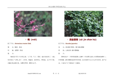 别 名:梅树、梅花 别 名:洒金桃叶珊瑚、桃叶洒金珊瑚
